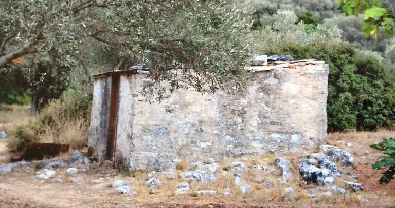 Dit vakantiehuisje staat op een olijfveld van 80 x 400 meter, een oase van rust en ruimte. Het hoofdgedeelte van het huisje is het slaapgedeelte van 2.50 x 3.50 m. met 2 eenpersoonsbedden. Daarnaast is er een douche/toiletruimte en een keukentje. Achter het huis is een ruime hof met pergola waar je in koelte kunt genieten van de bomenpracht rondom en 's avonds van de overweldigende sterrenhemel.